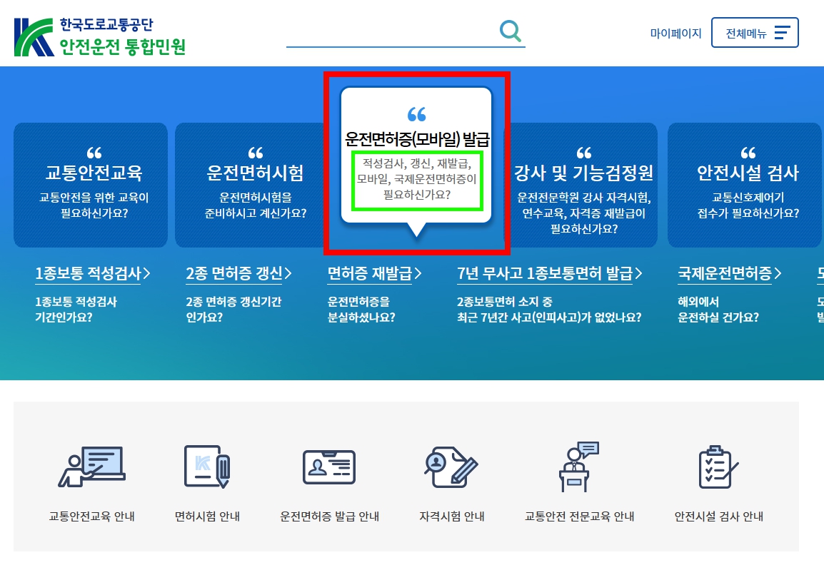 - ‘운전면허 갱신(재발급)’ 메뉴 선택